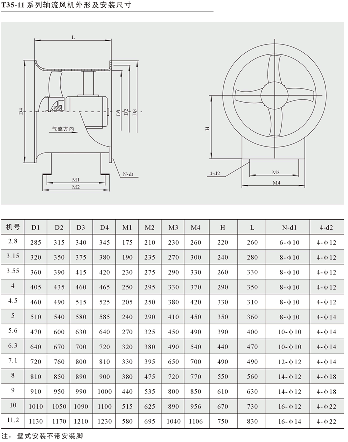 FT35-11和BT35-11型通风机的性能参数外形尺寸及其注意事项都可同T35-11一样。