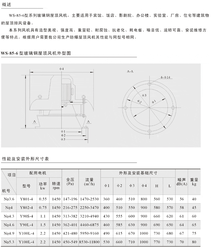 产品名称:WS-85-6型玻璃钢屋顶风机