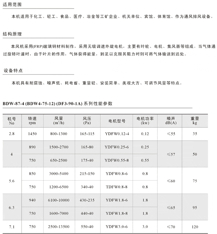 产品名称:BDW-87-4型玻璃钢离心式屋顶风机