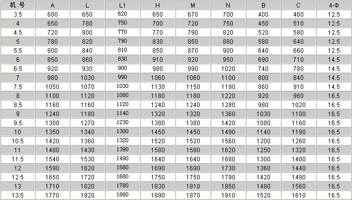 | 机号:3.5#-13.5# 风量:3053-84386m3/h 全压:143-1120Pa |